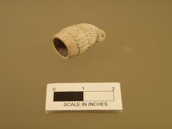 Clay tobacco pipes were first manufactured in England in the late 1500s and by 1847 they were being made in the United States by Thomas Smith of New York. They continued to increase in popularity until World War I when cigarettes became the preferred method of smoking tobacco. These simple clay pipes were known as \"penny pipes\" because they were inexpensive and readily disposable when they were chipped or broken. Pipe makers regularly marked their pipes on either the bowl or stem of the pipe to identify themselves. These pipes include a sample from C. Crop of London, who began making pipes in the 1840s. His sons took over the business in the 1870s and continued manufacturing clay pipes until 1924. The maker of a second pipe, with two molded upside-down U\'s on the bowl, is unknown. A third sample has a repeating fluted design around the bowl. They were recovered from the backyards of 38 and 40 Natoma Street, as well as within the former Risdon Iron Works.