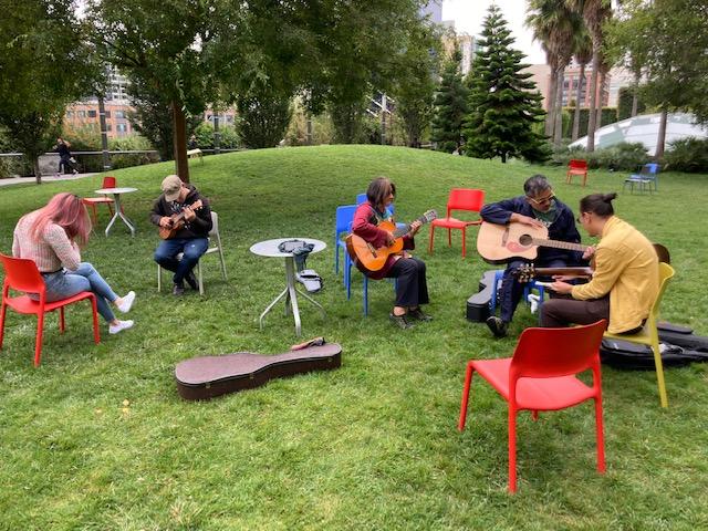 - The palms at the north side of the Central Lawn, looking west from its northeast corner.