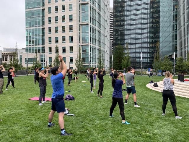 There are other gardens, grassy knolls, walkways, and ornamental groves throughout the park, which may be appropriate for a small-scale, creatively-planned placement or event. There is also a grass amphitheater. Permission to use these spaces can be discussed on a case-by-case basis with Salesforce Park management staff.