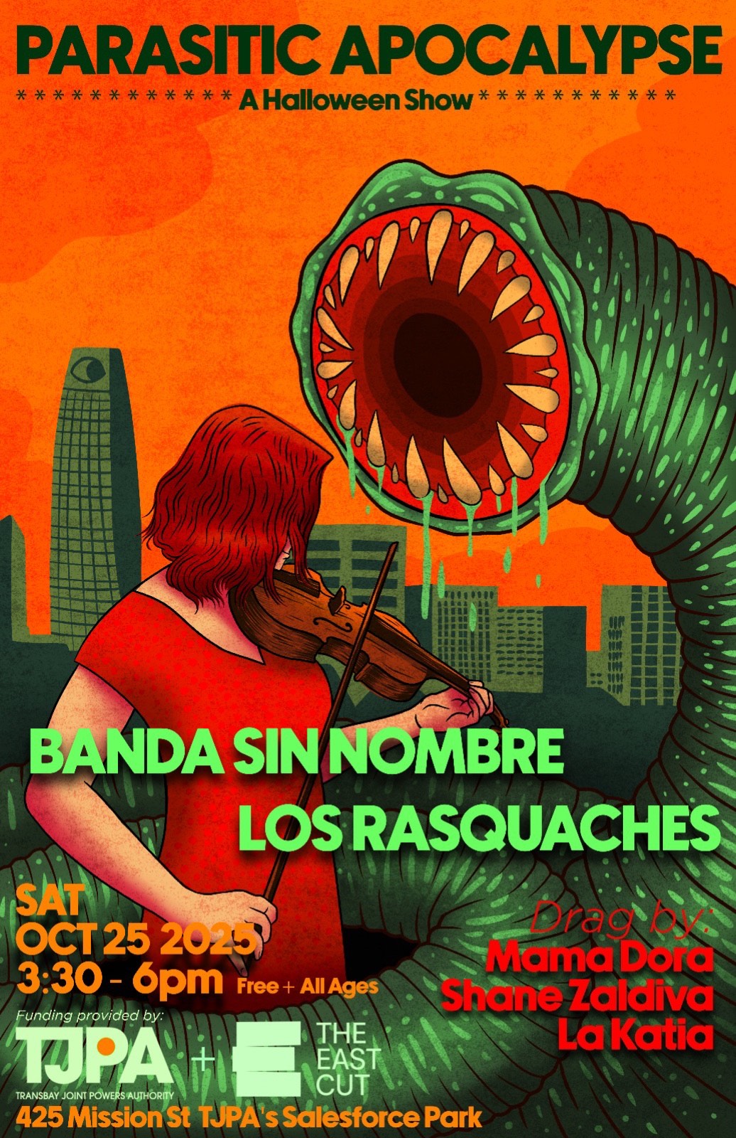 This year's theme will be Parasitic Apocalypse. This event brings together local queer musicians, drag artists, and performers and is produced by and featuring Banda Sin Nombre, with performances by Los Rasquaches, Shane Zaldivar, Mama Dora and La Katia.